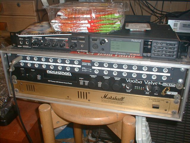 ラックの中身は、上からパッチャー(必要無し)、rocktron VooDu Valve、Marshall Model 8004(PA)。